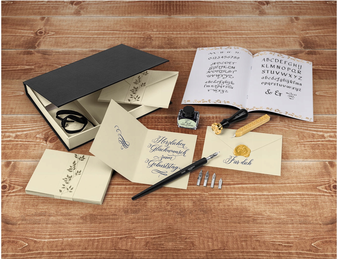 Набір для каліграфії дозволяє тренуватися в точному та красивому письмі. Завдяки цьому ви можете вдосконалити свої навички каліграфії та оволодіти різними стилями письма.