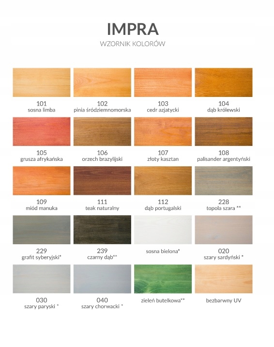 Impra — це просочення на основі смол алкаїди з додаванням лляної олії. Вміщені в ньому пігменти м'яко фарбують деревину, водночас підкреслюючи її природну красу. Продукт дуже просто наноситься, тому захистити дерев'яну огорожу або альтанку самостійно не проблема.
