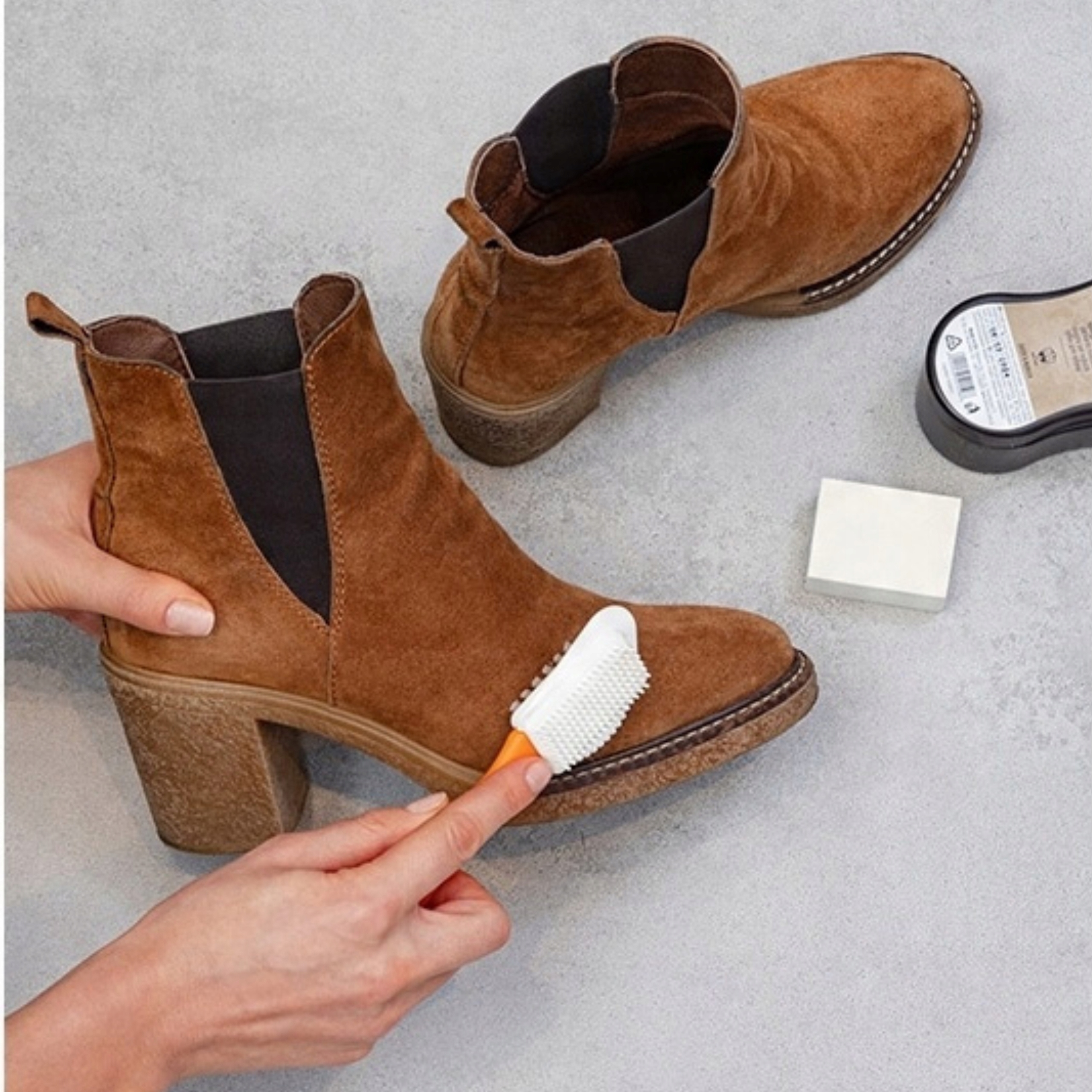 C. Безпечний для замші та нубуку - ніжна, але ефективна щетина дозволяє чистити взуття без ризику пошкодити структуру матеріалу.