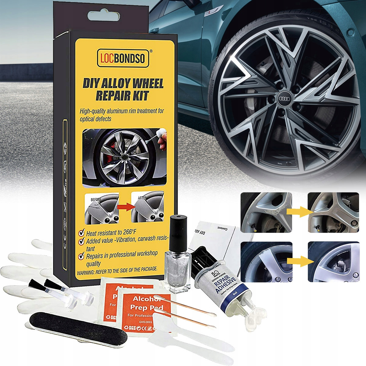 *1. Підготовка: очистіть пошкоджений легкосплавний обід серветкою, змоченою спиртом, і видаліть шорсткі краї та нерівності поблизу пошкодженої ділянки.