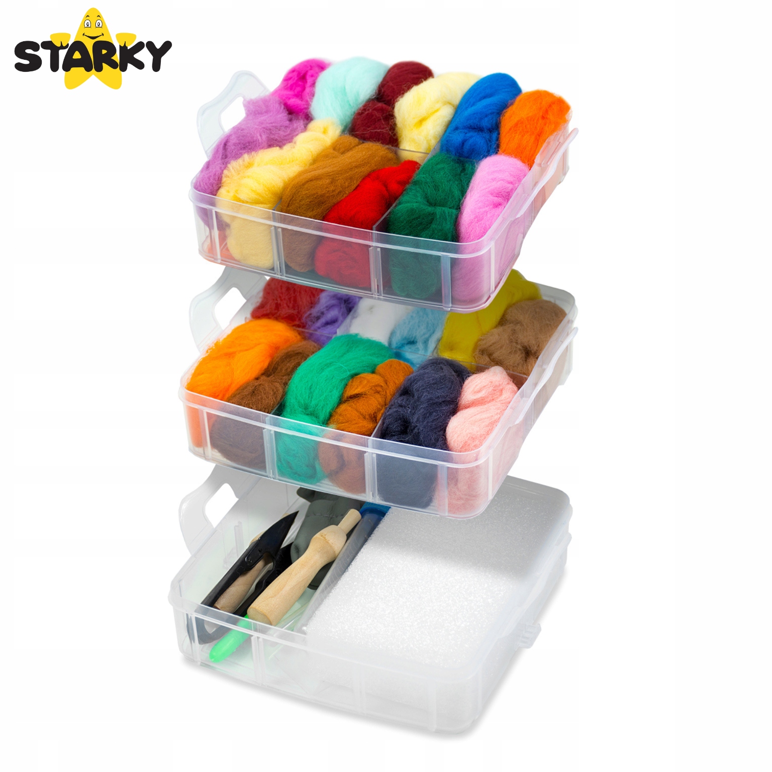 Не потрібно турбуватися про відсутність основних інструментів. Наш набір включає все, що потрібно для початку грати: від голки до пінопластового килима, ножиць та дерев’яної ручки .