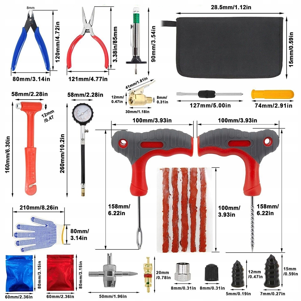 【Компактний набір для ремонту шин】 Цей набір для ремонту безкамерних шин поміщається в компактну полотняну сумку. Сумка ідеально поміщається в бардачок. Завдяки кишені для зберігання набір легко доступний навіть після багаторазового використання.