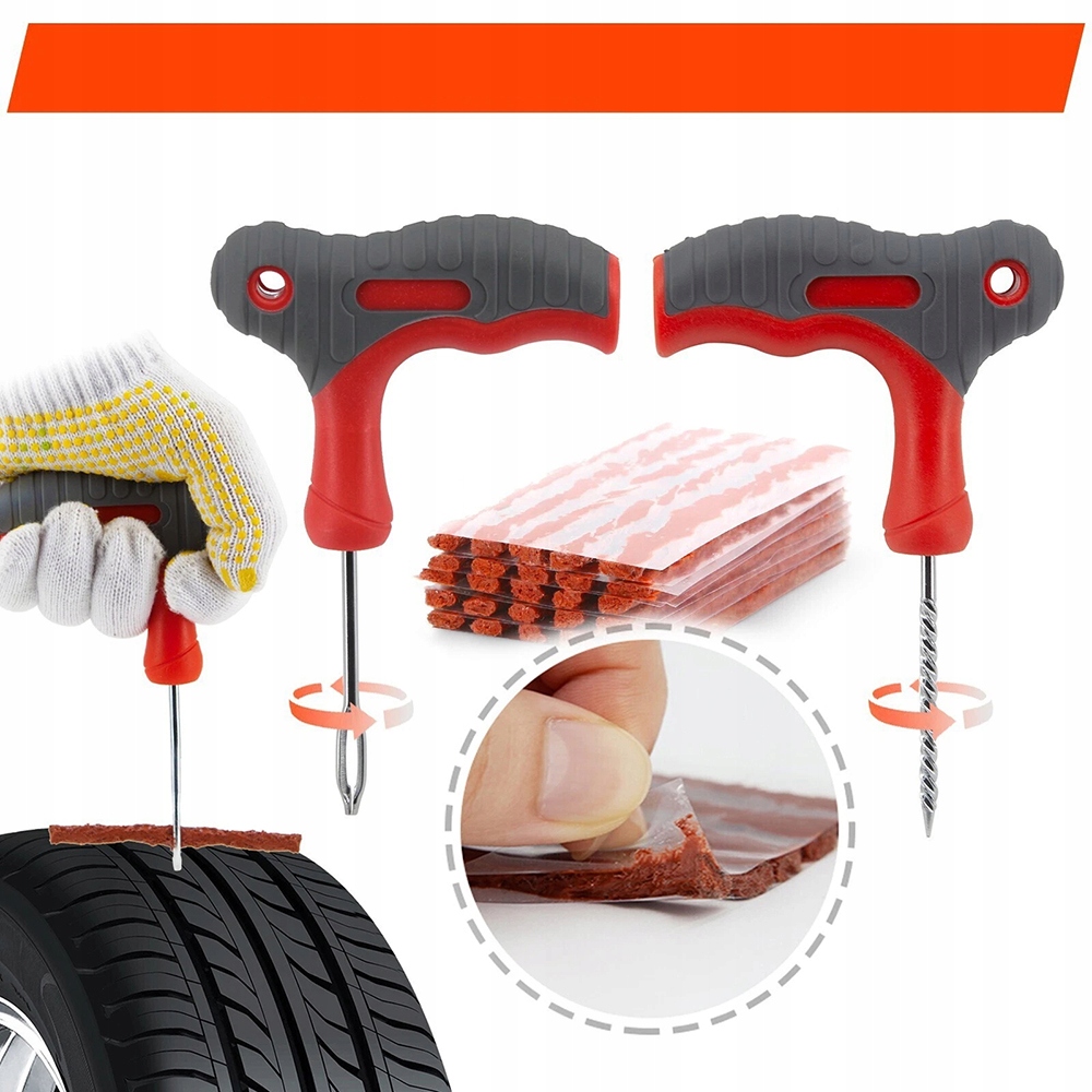 【Покращена Т-подібна ручка】Довжина ручки становить 100 мм, що робить її більшою за стандартний комплект для ремонту шин із Т-подібною ручкою. Ручка складається з двох шарів: внутрішнього шару з твердого пластику та зовнішнього шару з м’якої термопластичної гуми. Обидві ці функції забезпечують безпроблемне використання.