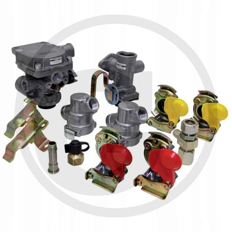 вміст :: • 1x anhängerbremsventil br • 1x bremskraftregler br • 2x rohrleitungsfilter br • 2x kupplungsköpfe rohr. 2x Leerkupplung br • 1x gerade schlauchverschraubung mit prüfanschluss