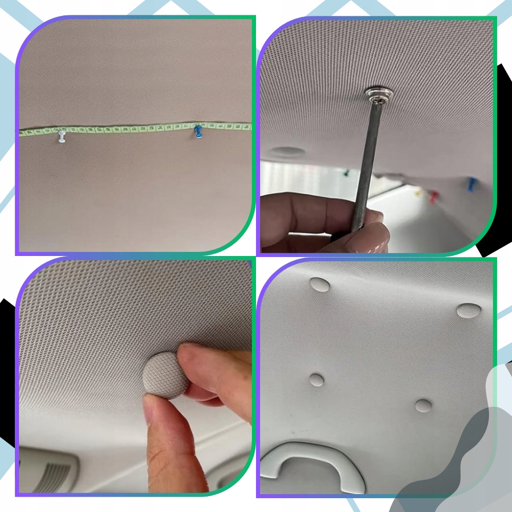 ✅ Встановлення надзвичайно просте - просто позначте місце кріплення, вкрутіть заклепку викруткою та натисніть. Для кращого ефекту рекомендується відстань між елементами 10-15 см. Завдяки цьому комплект оббивки стелі автомобіля забезпечує довговічність і естетичність.