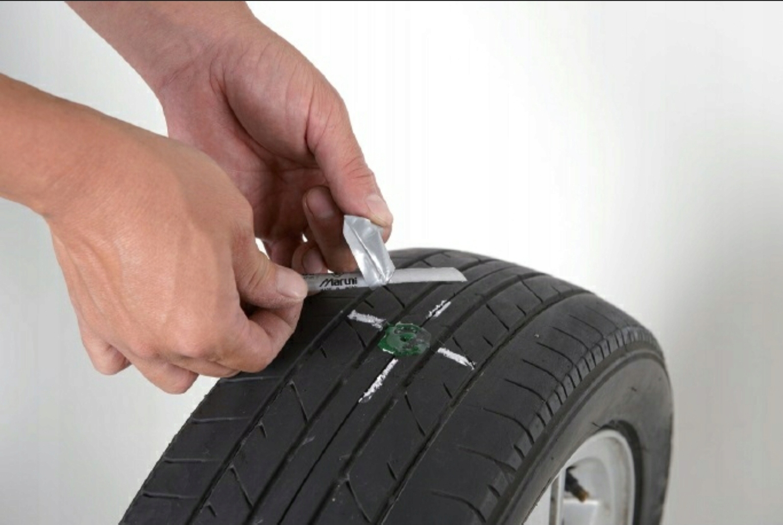1. Плоскогубцями видаліть стороннє тіло з шини, а потім позначте пошкодження крейдою.