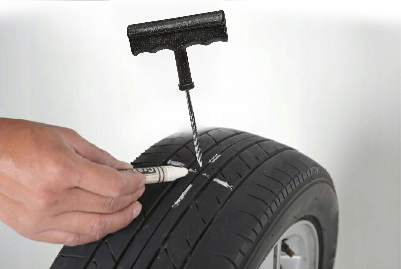 - аплікатор клеюз ручкою «Т», який використовується для очищення отвору в шині та введення клею