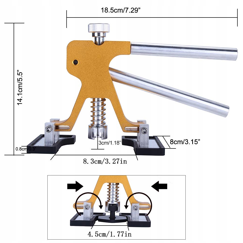 🔨 РЕМОНТ ВМ’ЯТИН БЕЗ БАРБА: це інструмент для видалення вм’ятин на 100% без фарби. Нижня частина моста для видалення вм’ятин і підйомника вм’ятин виготовлені з гуми і не пошкодять оригінальну фарбу. Після того як засіб для видалення вм’ятин видалить вм’ятину, ви можете розпорошити клей, що залишився, 90% або більше спирту, щоб повністю видалити залишки клею, не пошкоджуючи оригінальну фарбу.