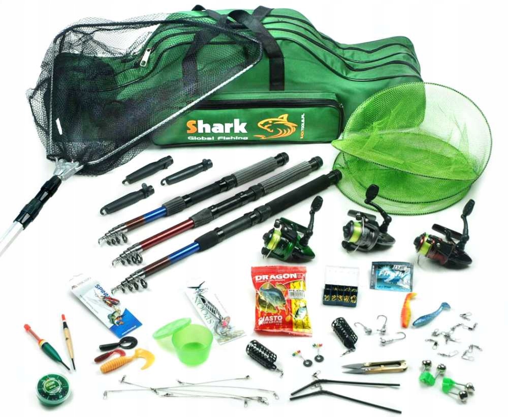 Повний, готовий до риболовлі, дуже багатий рибальський набір з чохлом і сачкомдля риболовлі на спінінг,поплавок і грунтз величезною кількістю аксесуари.