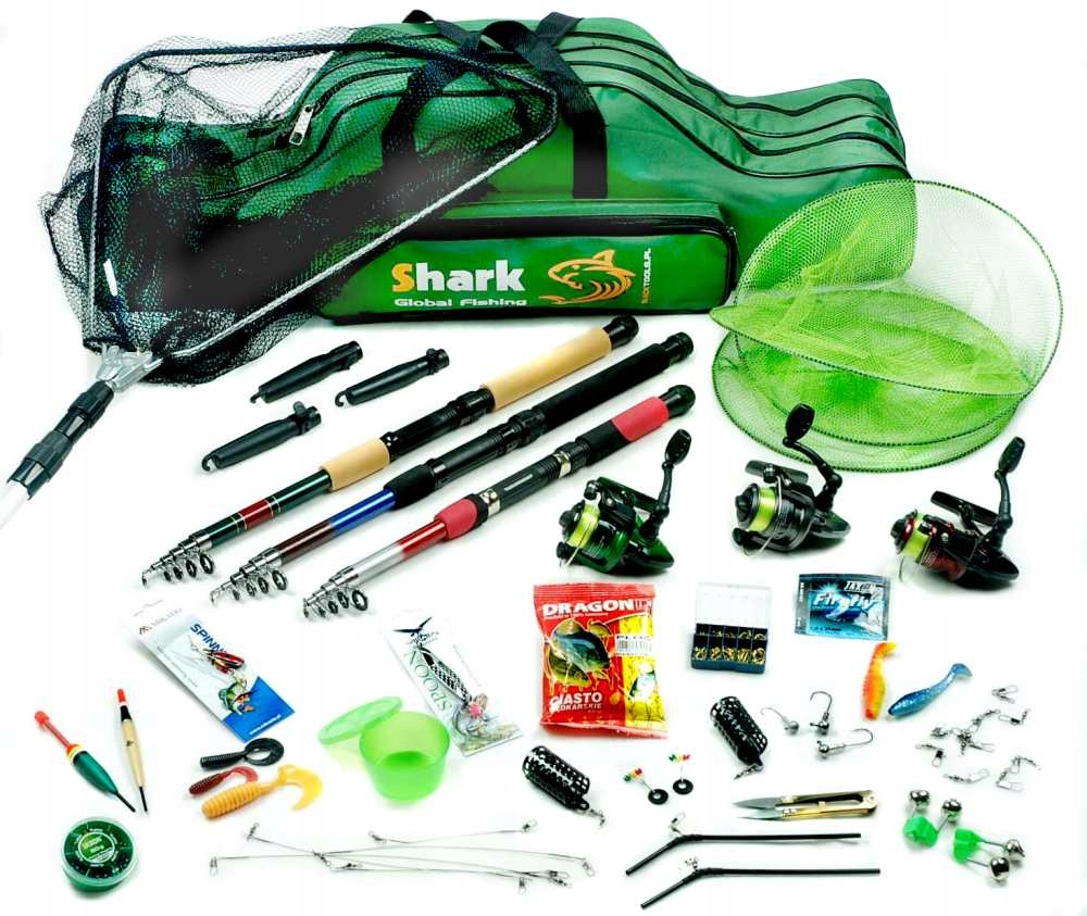 Повний, готовий до риболовлі, дуже багатий рибальський набір з чохлом і сачкомдля риболовлі на спінінг,поплавок і грунтз величезною кількістю аксесуари.