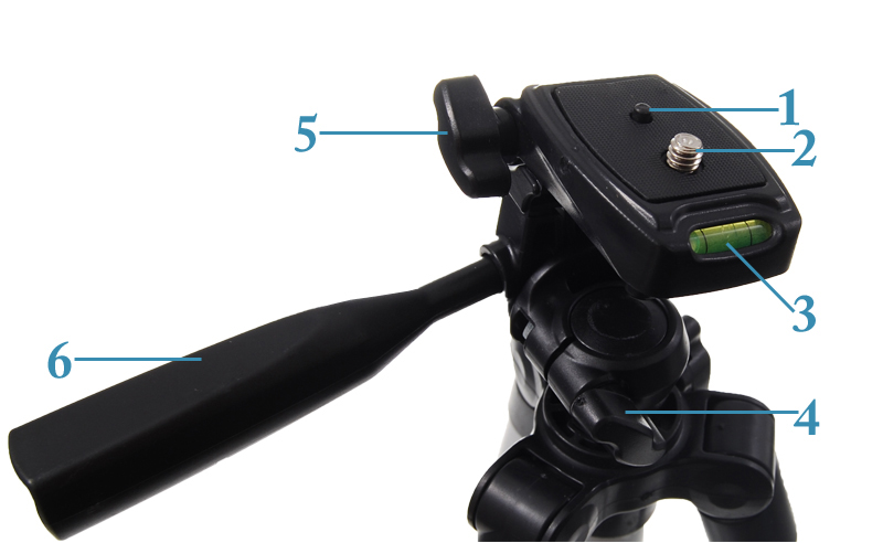 Верхня частина штатива являє собою тривимірну головку з рівнем (дозволяє точно вирівняти) зі стандартною різьбою 1/4 " і центруючим штифтом.