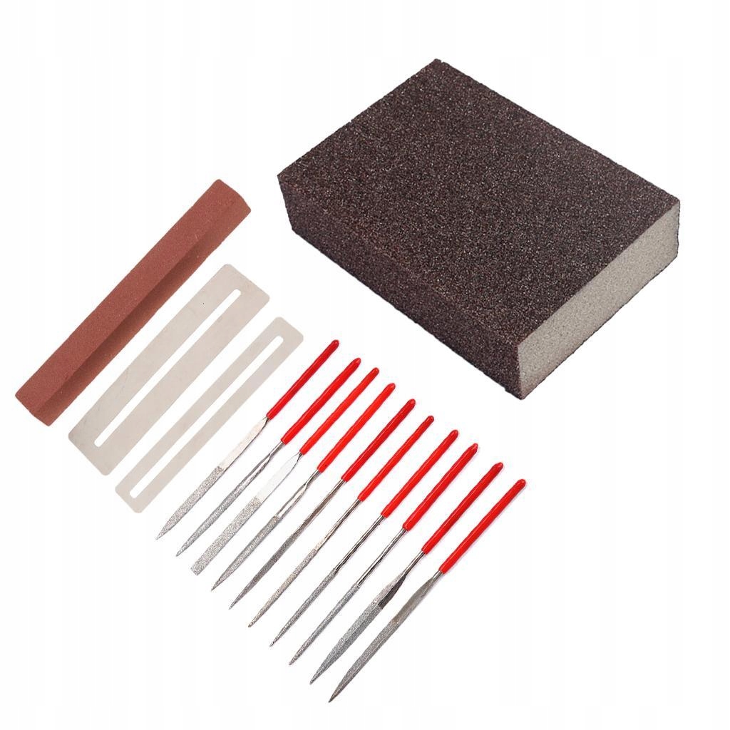 Шліфувальний набір включає різні форми, зокрема плоскі, квадратні, круглі, напівкруглі, еліптичні, трикутні тощо.