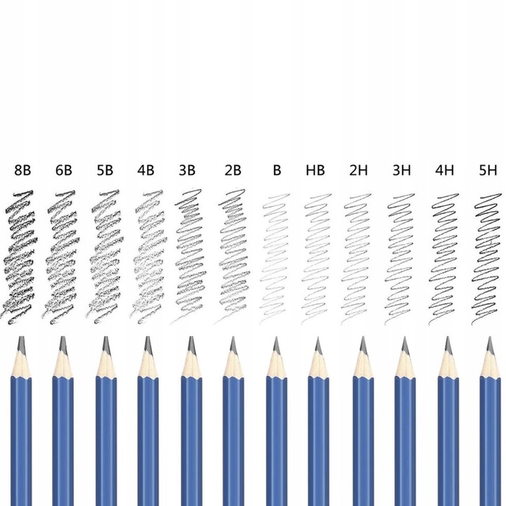 - 12 олівців для малювання (2H / 3H / 4H / 5H / HB / B / B2 / B3 / B4 / B5 / B6 / B8)