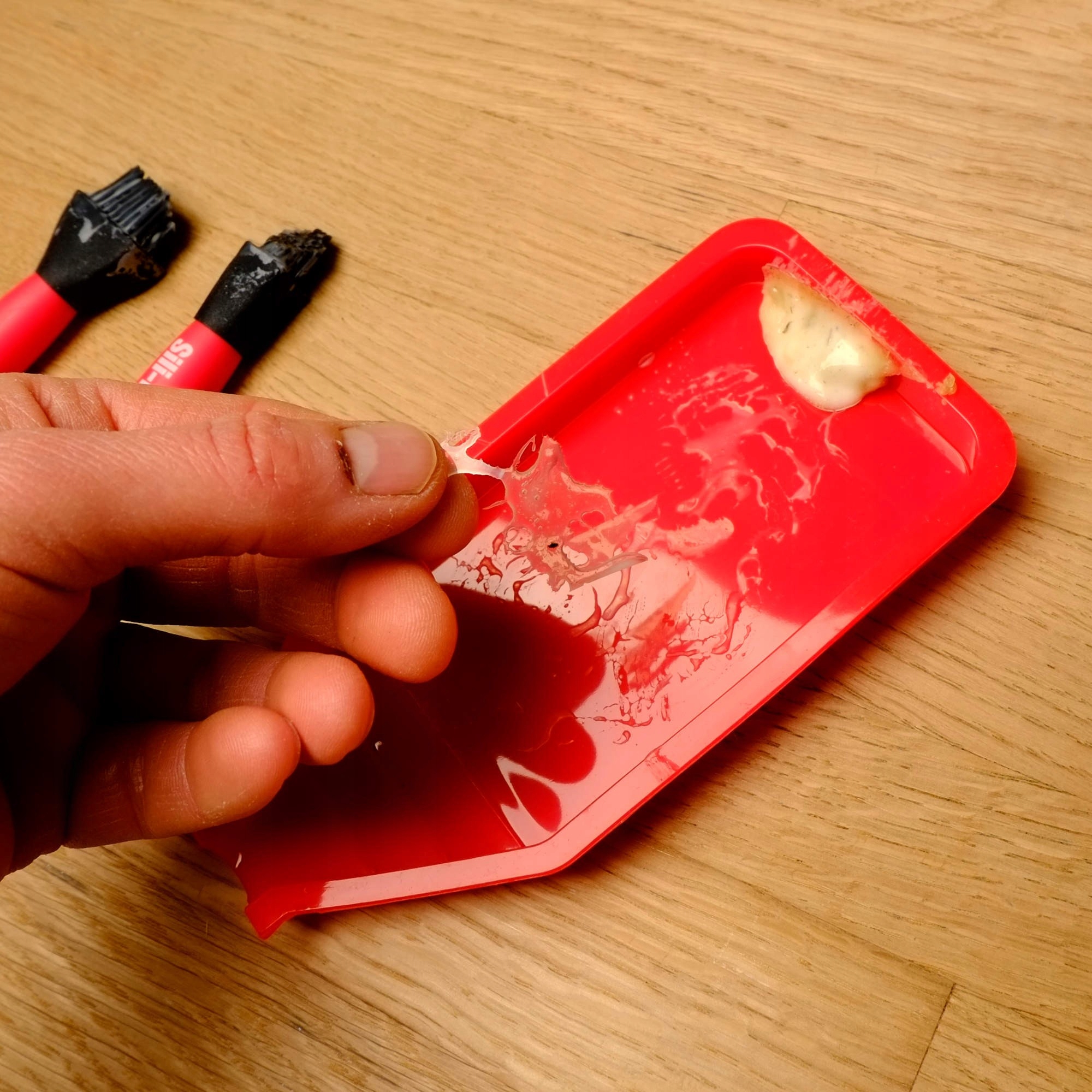 Силіконова гребінець полегшує рівномірне нанесення клею на великі плоскі елементи.