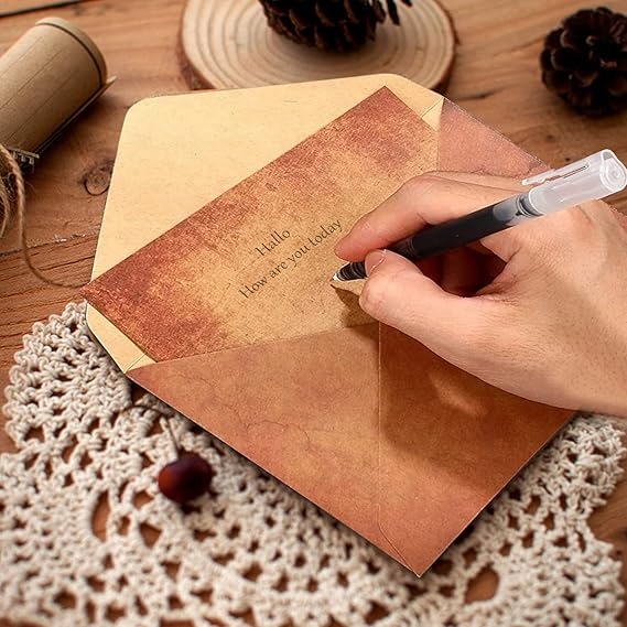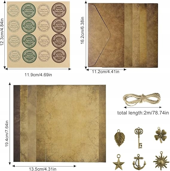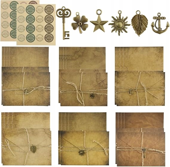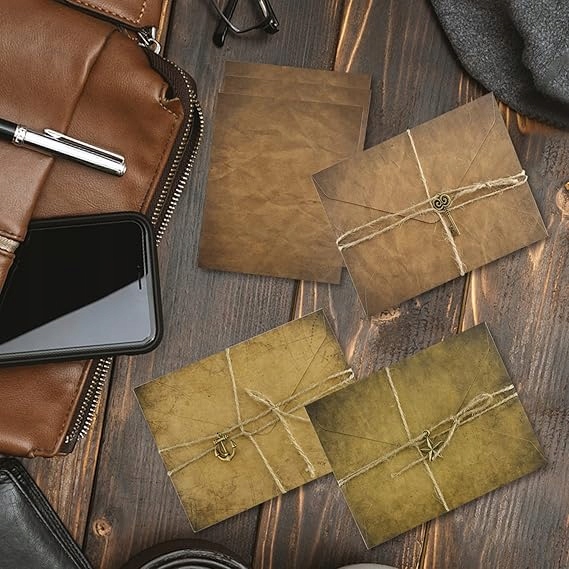 Конверти виготовлені з високоякісного вінтажного паперу, що надає їм неповторного шарму та старовинної елегантності. Ідеально підходить як елемент декору для будь-якого випадку.