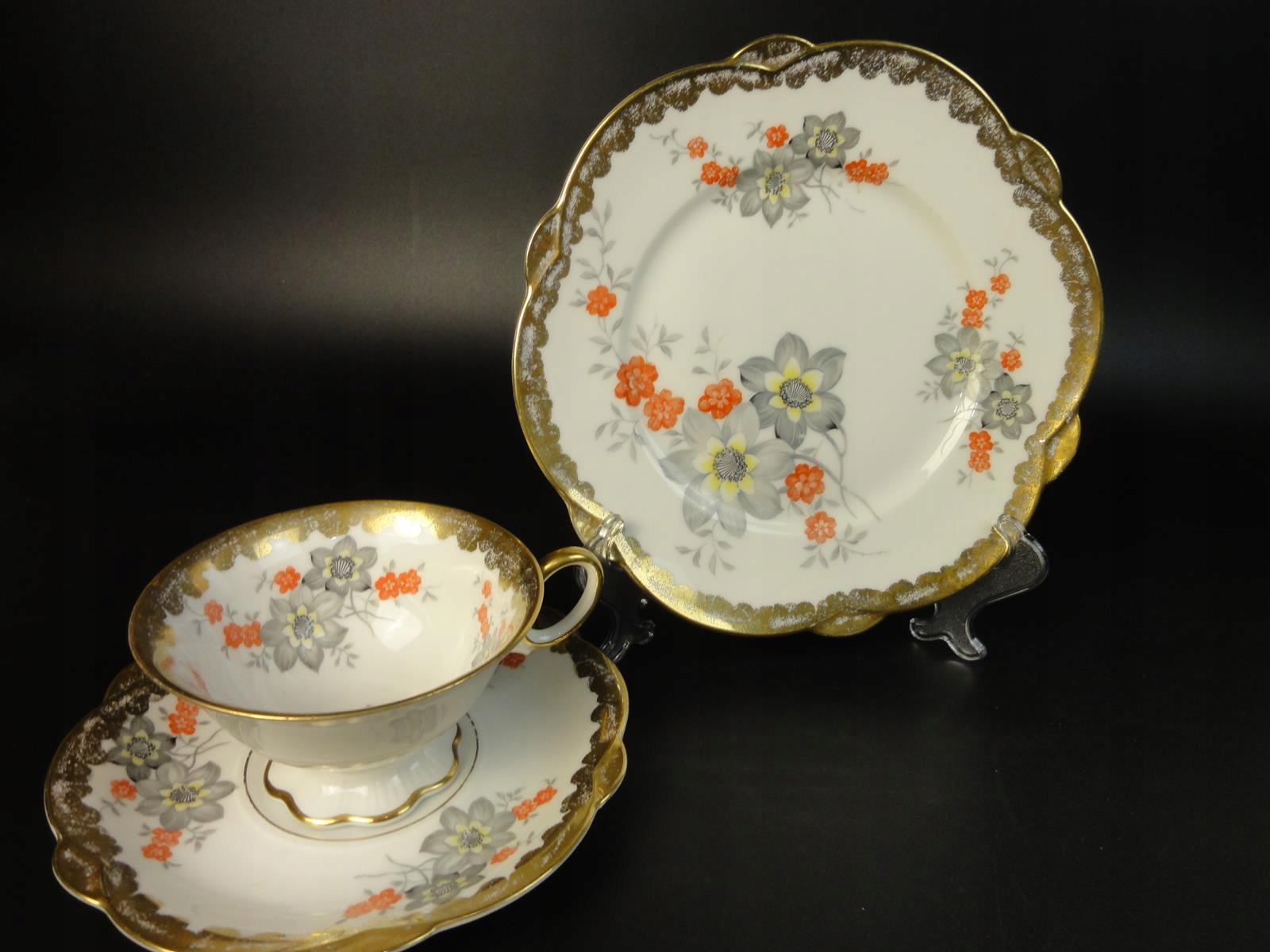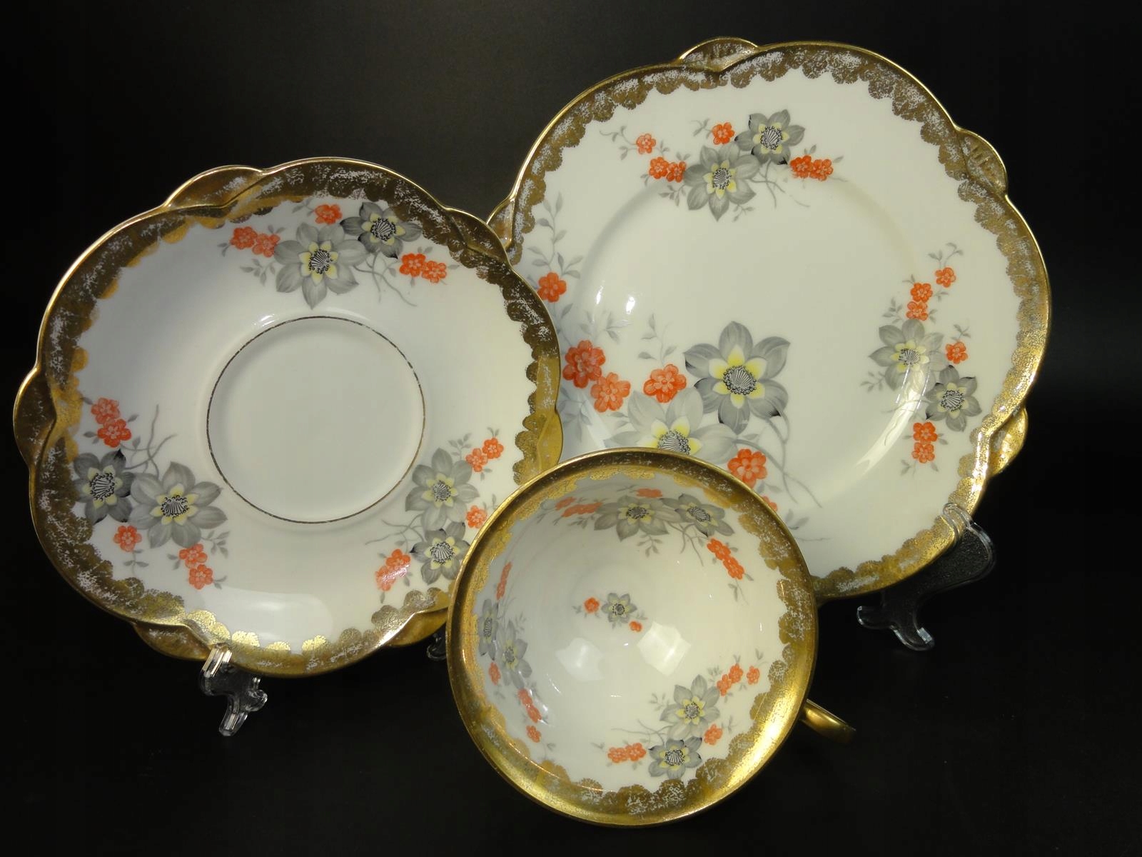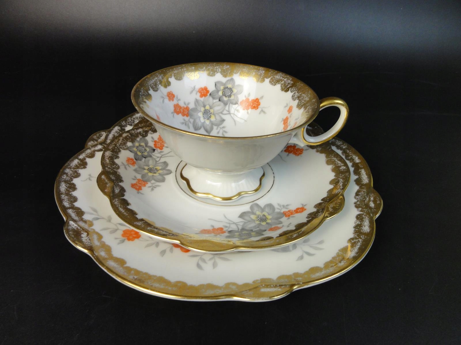 *набір для сніданку з білої порцеляни, оздоблений калькою та багатою позолотою,