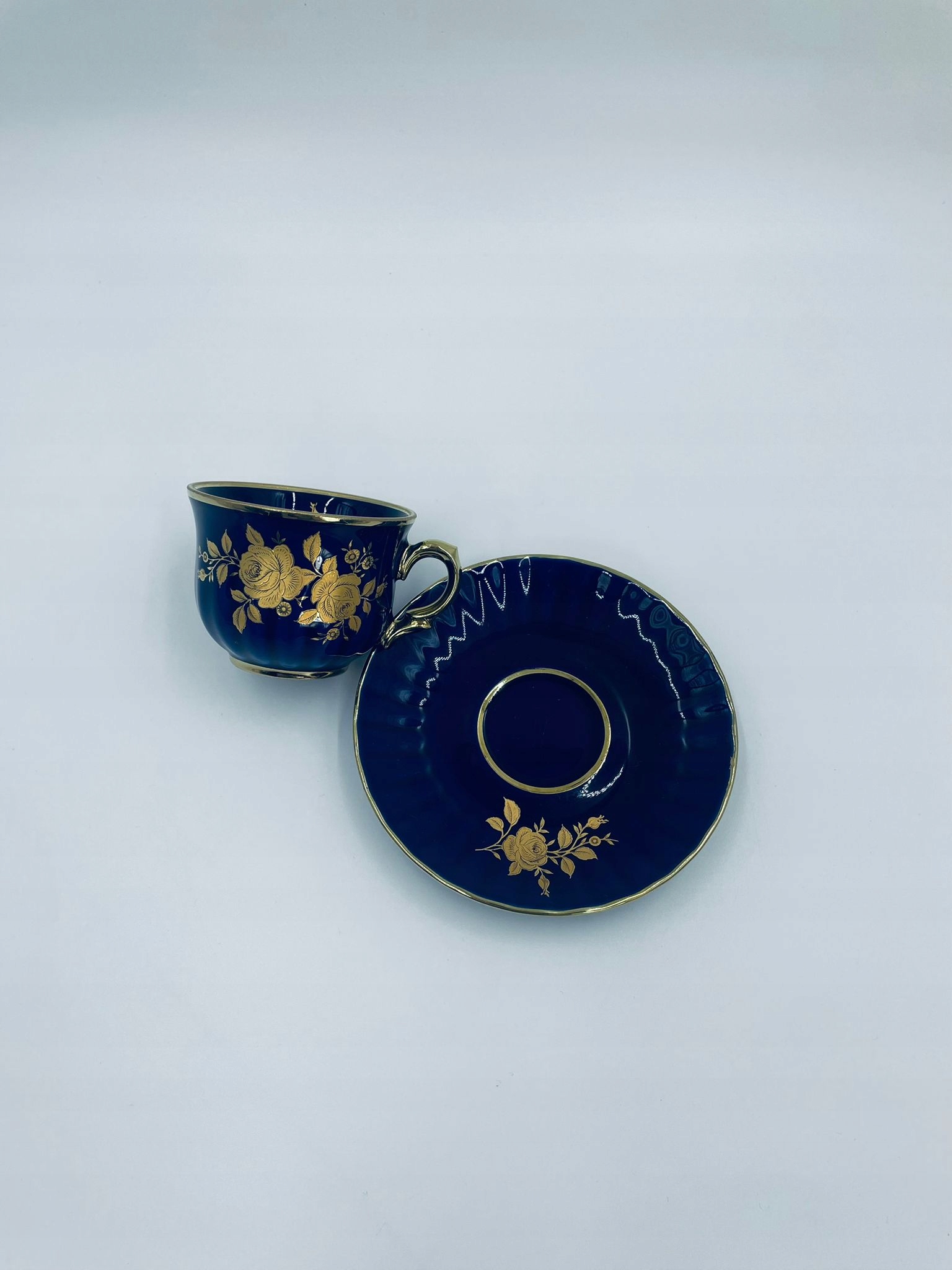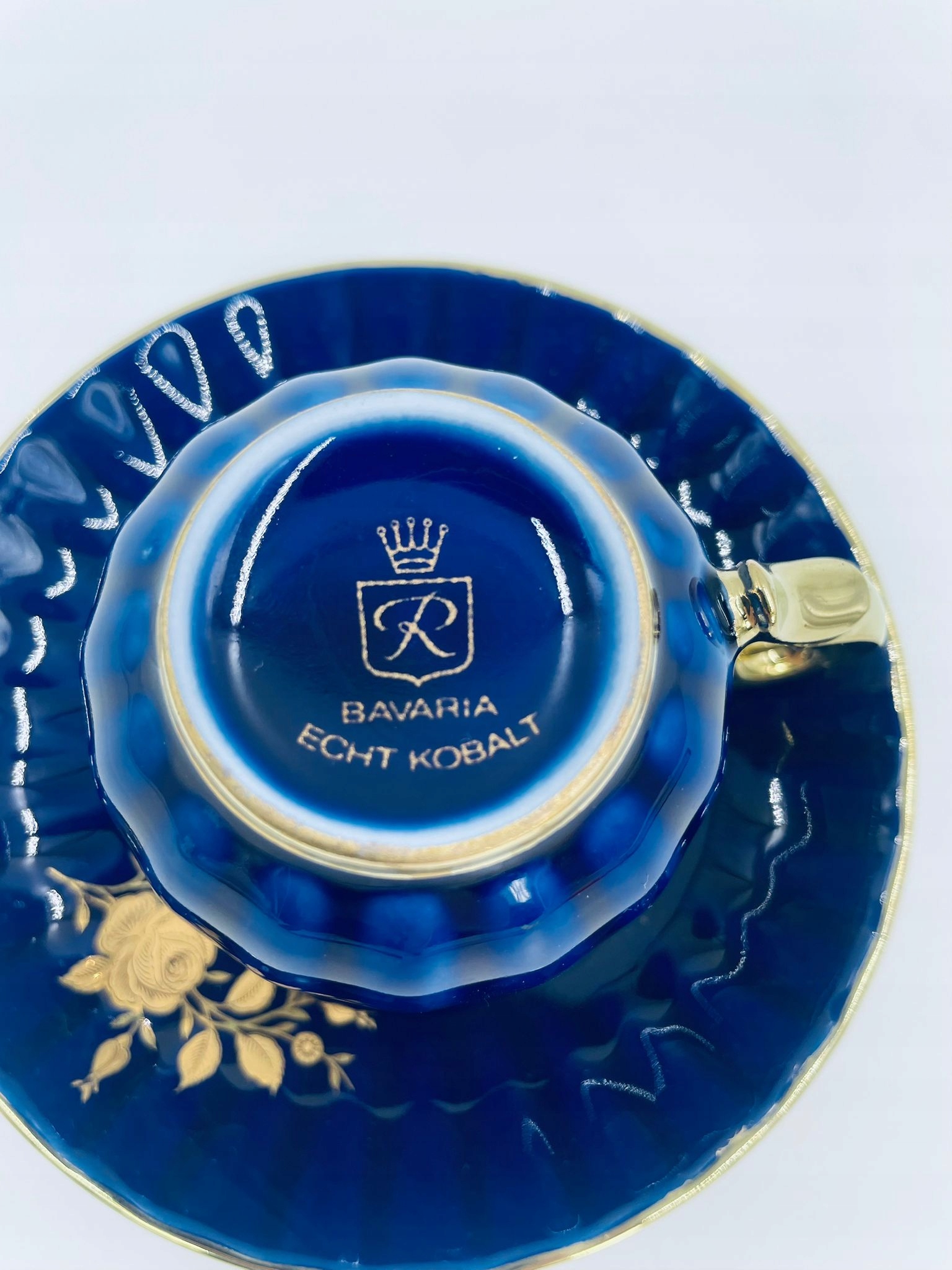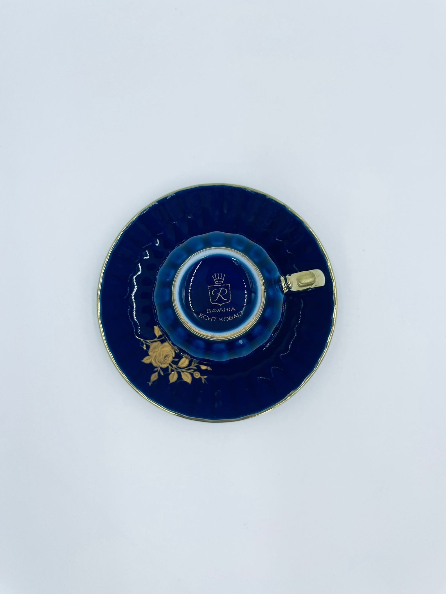 Колекційна чашка в наборі Duo, виробництва Wunsiedel Bavaria Echt Kobalt, виготовлена з високоякісної порцеляни. Кобальтовий набір, прикрашений квітковим мотивом із 24-каратного золота, із золотим покриттям по краях.