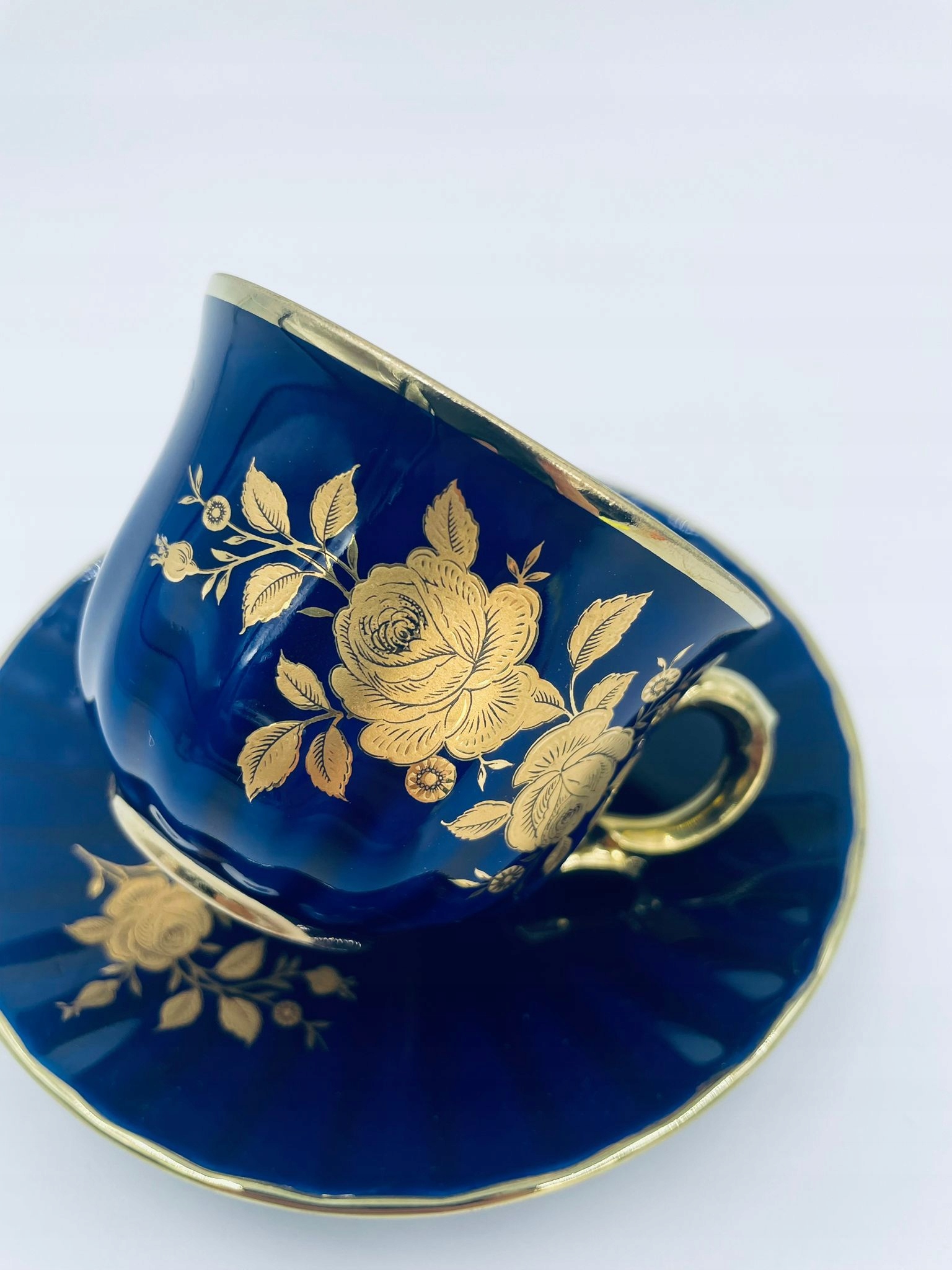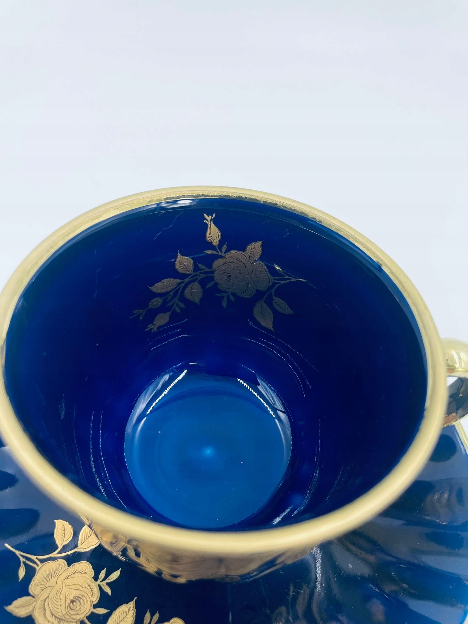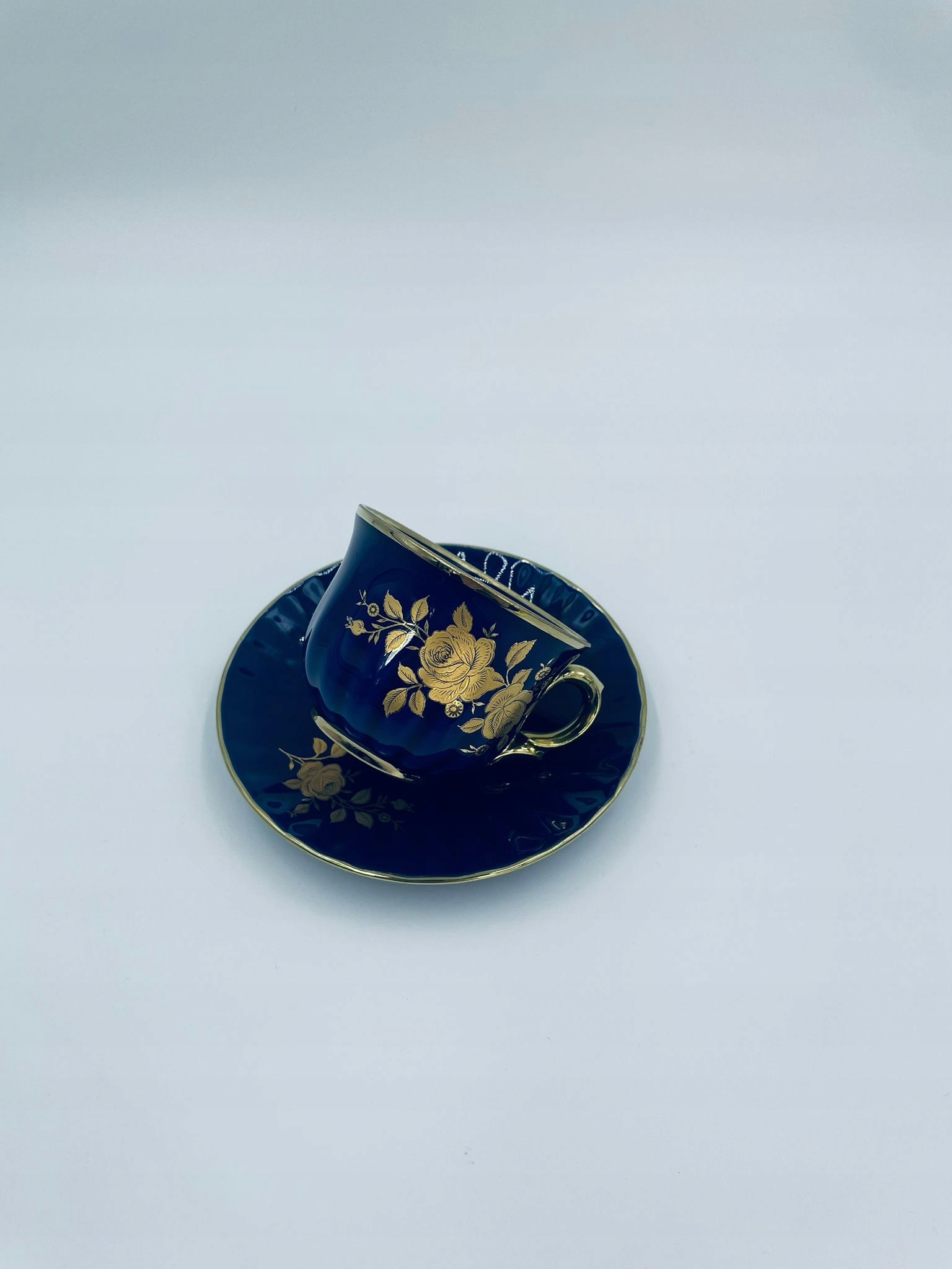 Колекційна чашка в наборі Duo, виробництва Wunsiedel Bavaria Echt Kobalt, виготовлена з високоякісної порцеляни. Кобальтовий набір, прикрашений квітковим мотивом із 24-каратного золота, із золотим покриттям по краях.