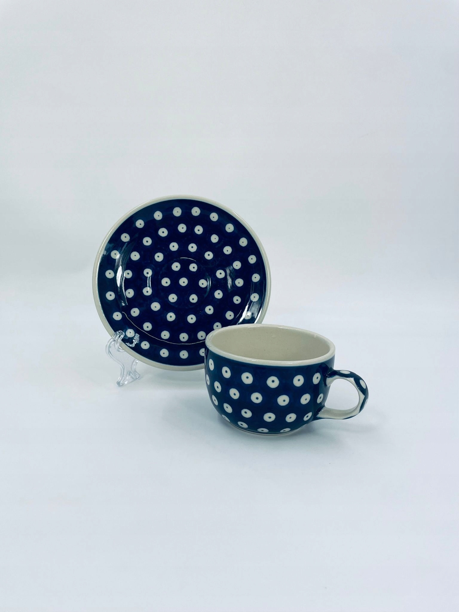 Колекційна чашка в наборі дует від польського виробника Bolesławiec, виготовлена з кераміки найвищої якості. Темно-синій набір ручної роботи прикрашений розписаним вручну традиційним точковим візерунком. Візерунки на болеславецькій кераміці створені за допомогою штампів і пензлів.