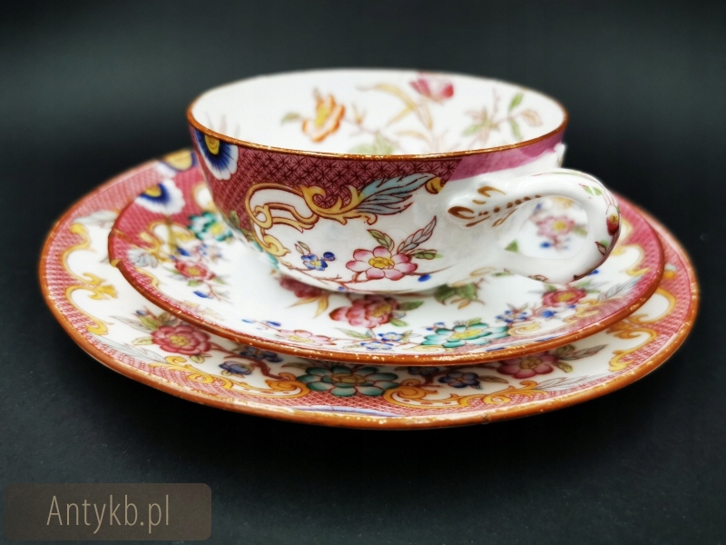 Ми представляємо надзвичайно красиве тріо для сніданку від французької мануфактури Sarreguemines, якою керує родина Казаль. Набір складається з чашки з блюдцем і десертної тарілки, кожна з яких походить з кінця 19 століття, про що свідчить підпис на дні кожної тарілки. Кожен елемент прикрашений красивим, розписаним вручну квітковим візерунком із домінуючим рожевим кольором.