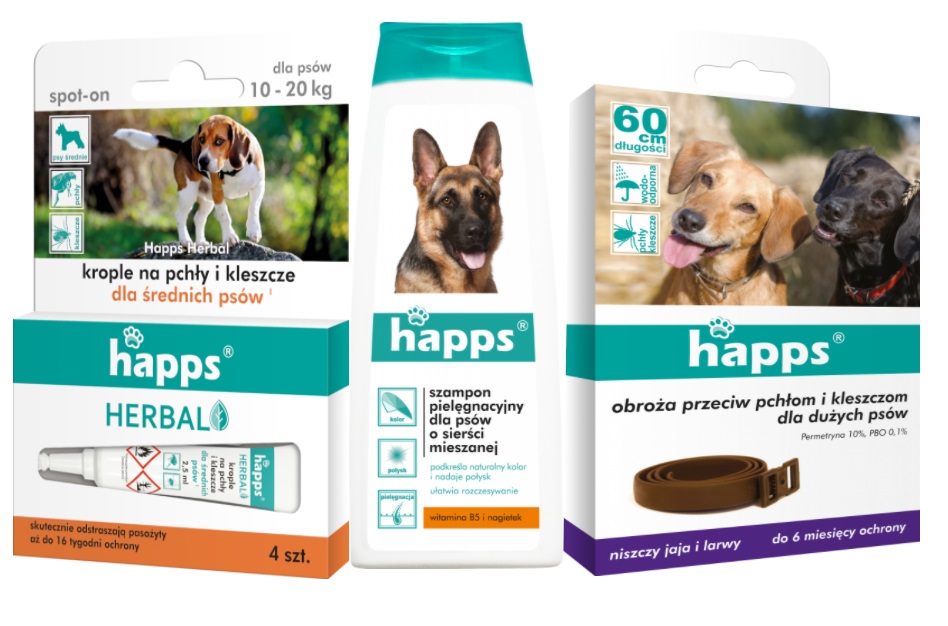 Зручні та прості у застосуванні HAPPS HERBAL краплі - препарат для відлякування бліх та кліщів, який наноситься безпосередньо на собаку шкіри. Його можна застосовувати як дорослим тваринам, так і цуценятам старше 12 тижнів. 4 застосування забезпечують захист до 16 тижнів.