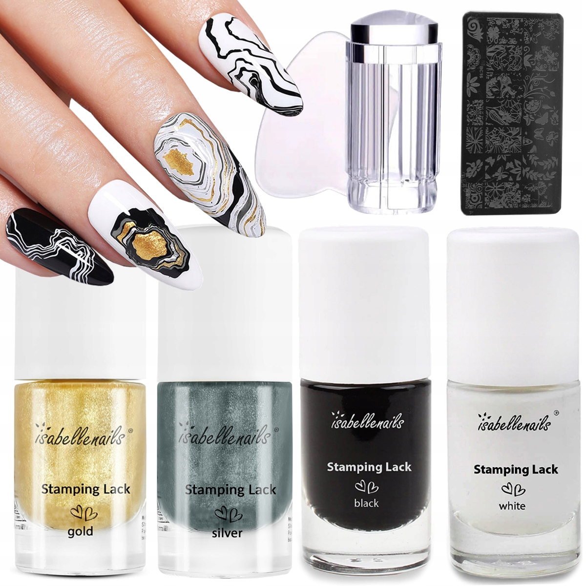 Чотири різні кольори лаків для стемпінгу isabellenails виглядатимуть приголомшливо у поєднанні з багатьма кольорами для створення унікальних композицій!