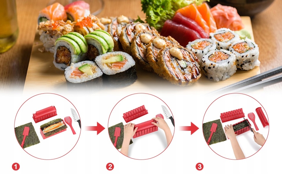 - Ми пропонуємо новий стиль нашого суші-сету з покращеним матеріалом, посиленою упаковкою та вищою якістю. Створюйте красиві суші швидко та зручно вдома за допомогою нашого творчого набору для суші. !