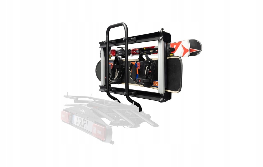 - Власник лижників -має робочу ширину 400 мм , що забезпечує стабільне та безпечне кріплення до 3 пари лиж або 2 сноуборду. Встановлення ручок на платформі та для кріплення коробки (коробка/платформа Aguri не включається)