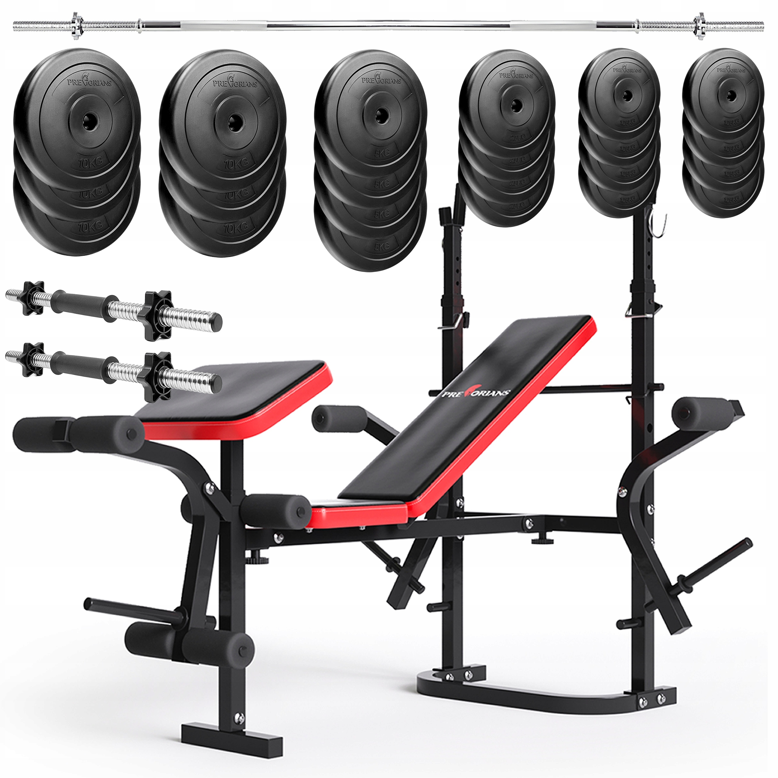 ✔️ Цей комплексний пакет включає регульовану лаву, пряму штангу, короткі штанги для гантелей і гирі загальною вагою 100 кг, які забезпечать вас усім необхідним для комплексного силового тренування.