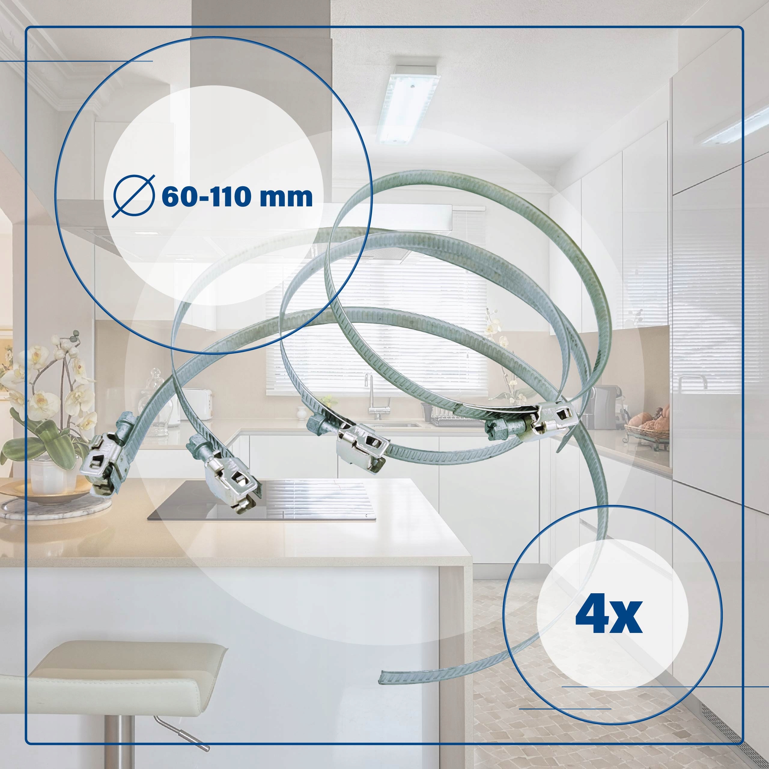 Витяжка є незамінним елементом кухонного обладнання. Він виконує дуже важливе завдання, а саме: усуває запахи, які виникають під час приготування. Завдяки йому повітря в наших будинках і квартирах залишається свіжим. Однак для того, щоб він працював належним чином, витяжка має бути добре підключена. Ви можете зробити це легко, вибравши наш набір. Ви знайдете всі елементи, необхідні для встановленняпристрою: алюмінієву трубу(1 шт.), стяжки(4 шт.) та самоклеюча стрічка (1 шт).