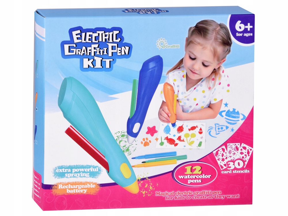 - Набір є ідеальною пропозицією для маленьких художників, які хочуть розвивати свої художні навички в оригінальний спосіб. Електричний пристрій, який працює як міні-пістолет для фарби, створює дивовижні ефекти розпилення та графіті, надихаючи на створення надзвичайних витворів мистецтва. Просто вставте кольоровий маркер, натисніть кнопку та почніть малювати, використовуючи додані шаблони, які дозволяють створювати цікаві візерунки. Завдяки можливості вільно малювати, діти розвивають свою творчість і мають повну мистецьку свободу. У набір входить електрична ручка Airbrush, 30 карток із шаблонами, 12 кольорових фломастерів, USB-кабель для зарядки. Виріб оснащений зарядкою USB-C, що робить його зручним і екологічним. Завдяки необмеженим творчим можливостям діти можуть прикрашати листівки, малюнки, прикраси або виконувати творчі проекти на будь-яке свято. Ручка Графіті - це не тільки іграшка, а й інструмент для розвитку художніх здібностей дітей. Ідеальний подарунок хлопчикам і дівчаткам, надихає на експерименти з кольорами, формами та візерунками. Виріб має довжину 18 см і має акумулятор ємністю 500 мАг 3,7 В, що забезпечує незабутні моменти творчого задоволення. Відкрийте для себе радість творити за допомогою ручки Airbrush Graffiti Pen, яка не тільки розважає, але й навчає та надихає на мистецькі дослідження. Ідеальний