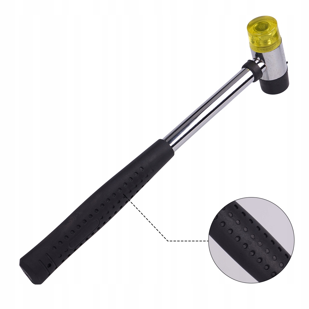 Жовта головка молотка виготовлена з поліуретану, який стійкий до зношування та розтягування.