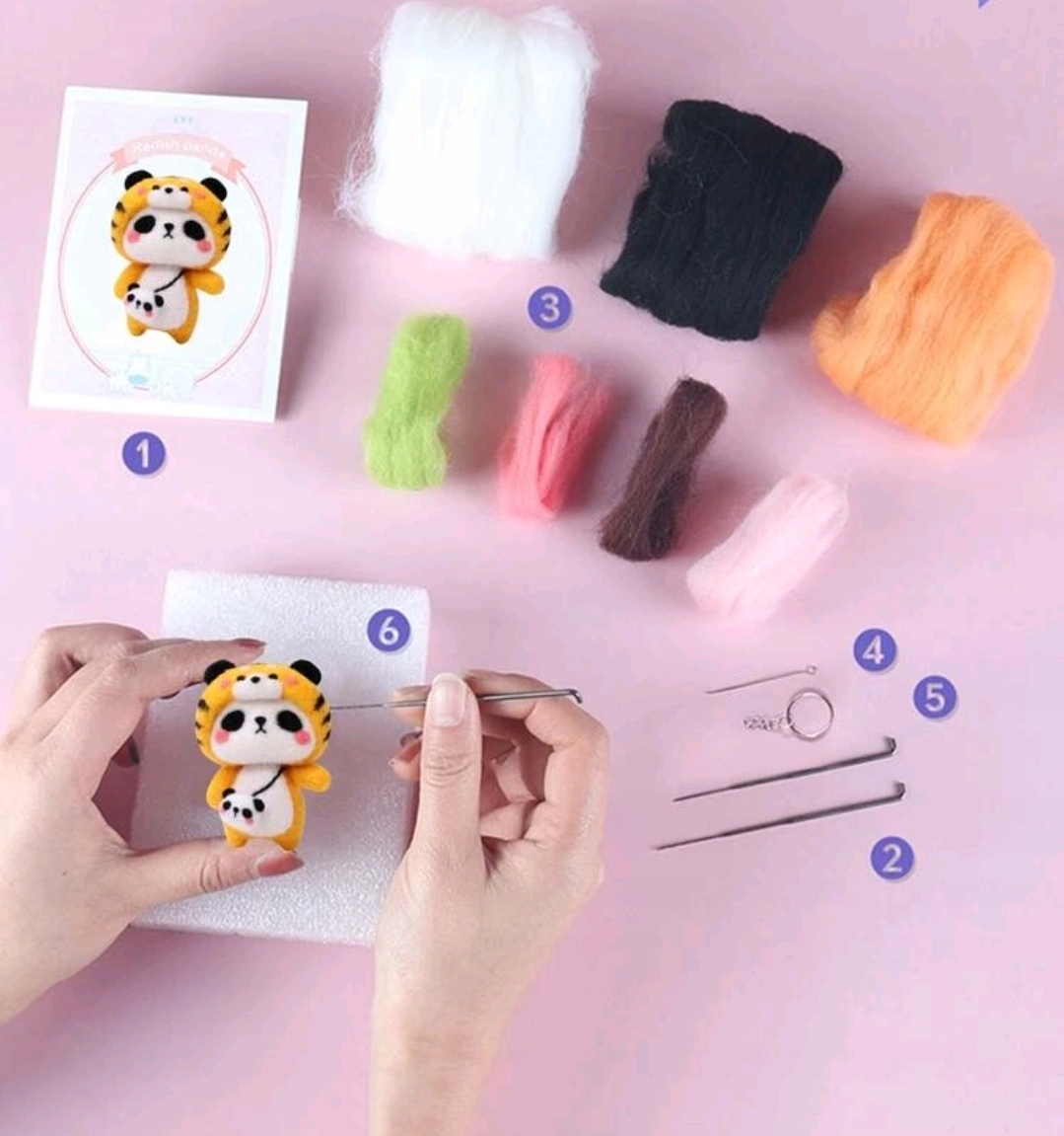 У набір входить все необхідне для камвольних матеріалів: шерсть, поролон для роботи, голки для валяння.