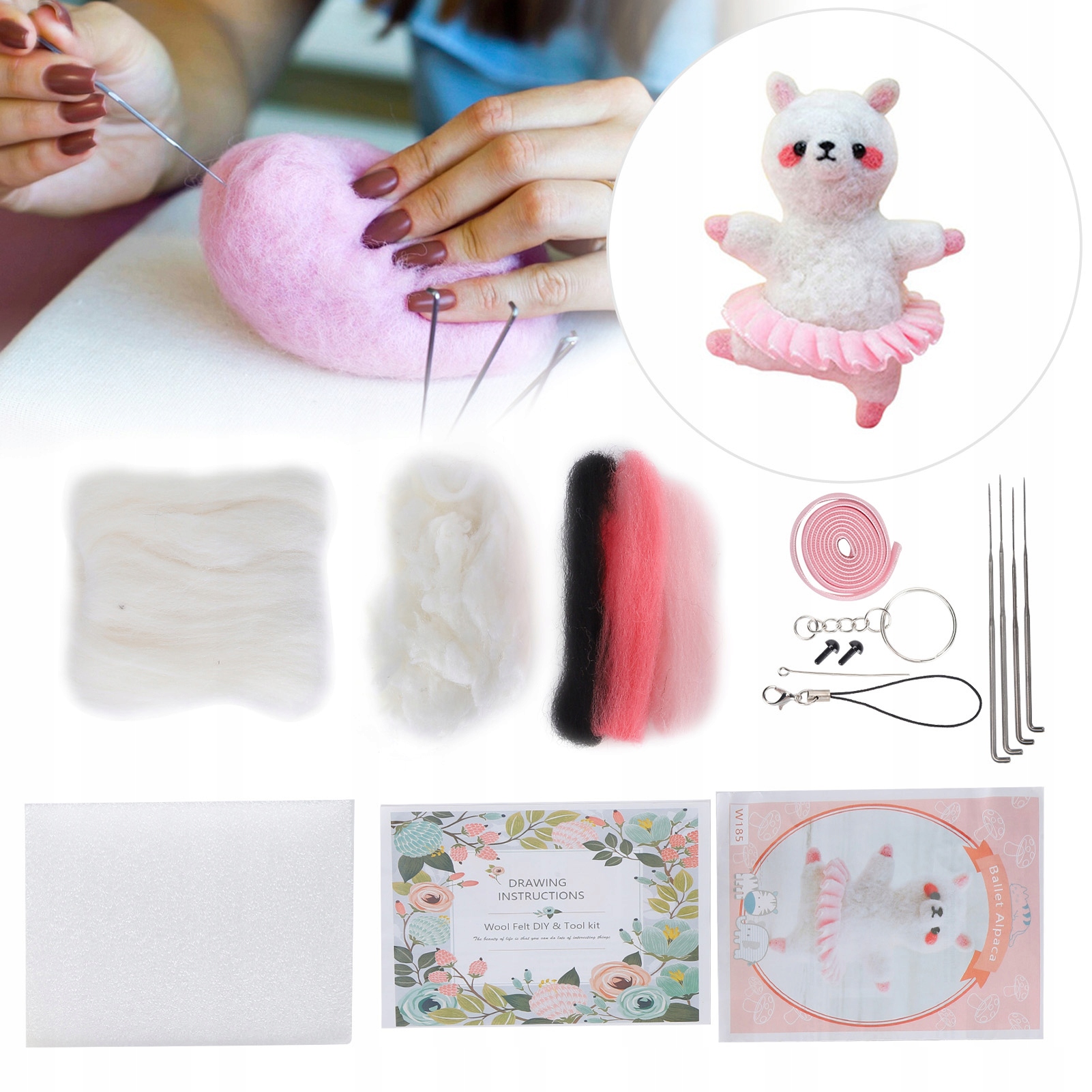Набір для валяння голкою, вовна, хімічне волокно, тварини, ручна робота, іграшки, мистецтво та ремесла для початківців (185# балетна альпака)