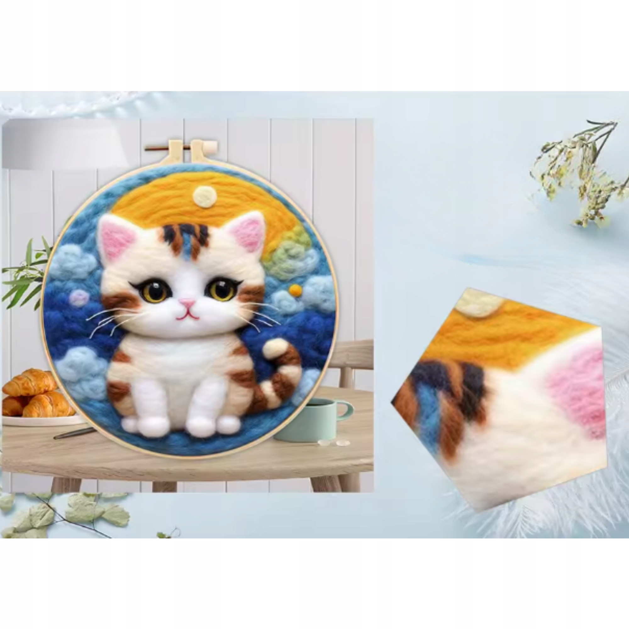 ☑️Набір для валяння з кошеням - це поєднання простоти, задоволення та ефектного результату. На відміну від класичної вишивки, створюється м’яка, об’ємна форма з реалістичним виглядом. Теплі кольори та чіткі деталі роблять готову картину схожою на плюшеву ілюстрацію. Це унікальний спосіб розвинути ручні навички та створити свій власний чарівний витвір мистецтва.