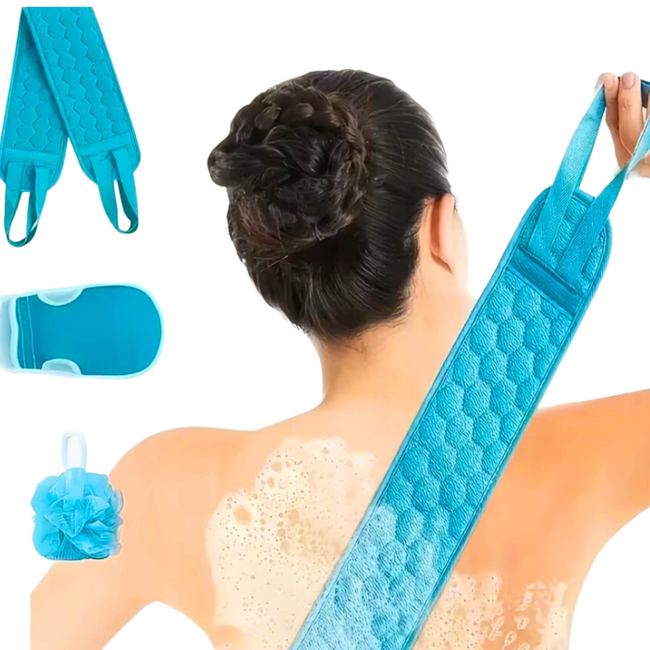 ✔ Пояс для миття спини (56,5 × 9 см) - гнучкий, зі зручними ручками. Ідеально очищає та м’яко відлущує шкіру, полегшуючи доступ до будь-якої ділянки.