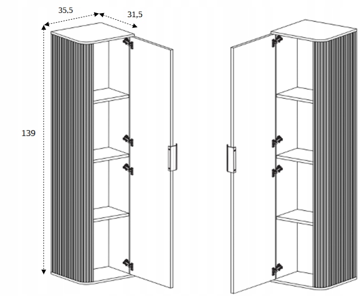 Овальні, рифлені фасади в стовпі з високоякісної плити МДФ це не тільки практичне рішення, а й естетичний елемент, який привертає увагу.