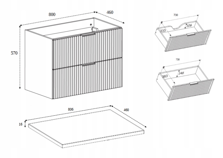 - Бічна сторона шафи - МДФ плита 16 мм, рифлена