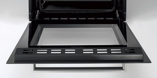 Нові скляні внутрішні дверцята мають середню температуру лише 55°C, тоді як температура всередині духовки становить 200°C. Той факт, що на всій скляній поверхні немає видимих шурупів, робить очищення простим і легким.