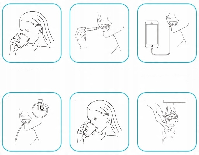 4. Помістіть кришку в рот і увімкніть її, вона автоматично вимкнеться через 16 хвилин. Полощіть зуби теплою водою