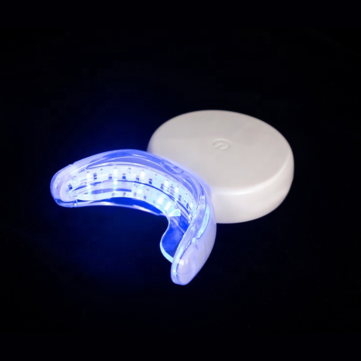 - Світлодіодна лампа з подвійним світлом активує інгредієнти гелю та прискорює процес відбілювання зубів. Синій колір вступає в реакцію з відбілюючим гелем, а червоний колір вбиває бактерії.