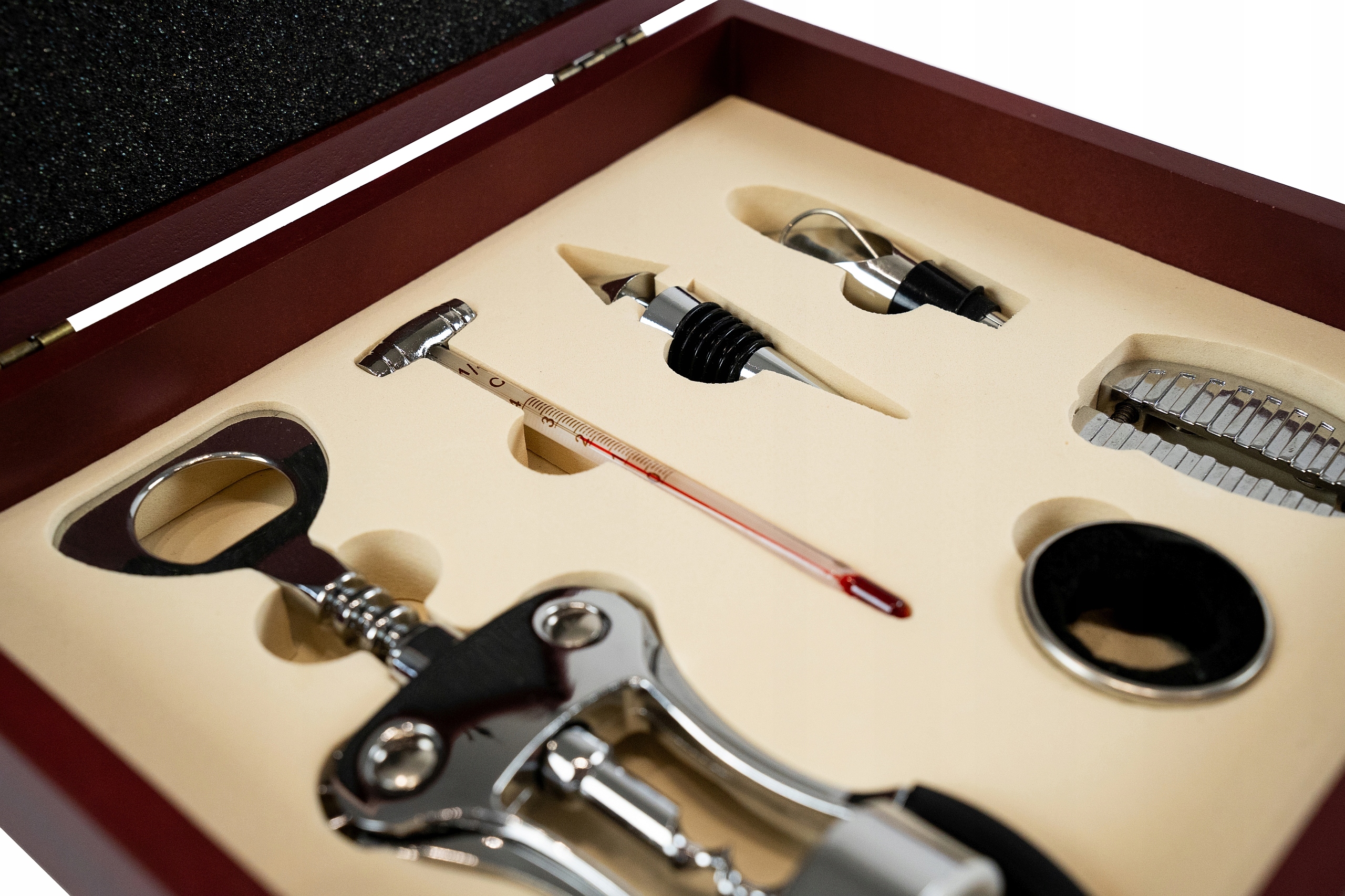 ✅ Шість винних аксесуарів у практичній коробці