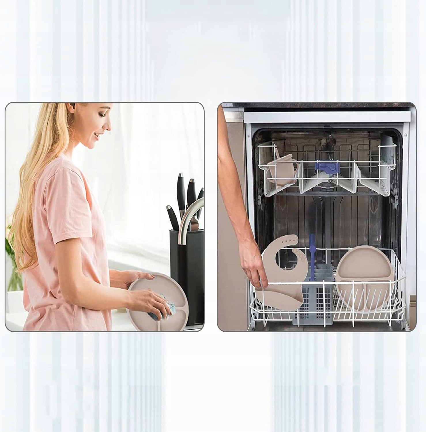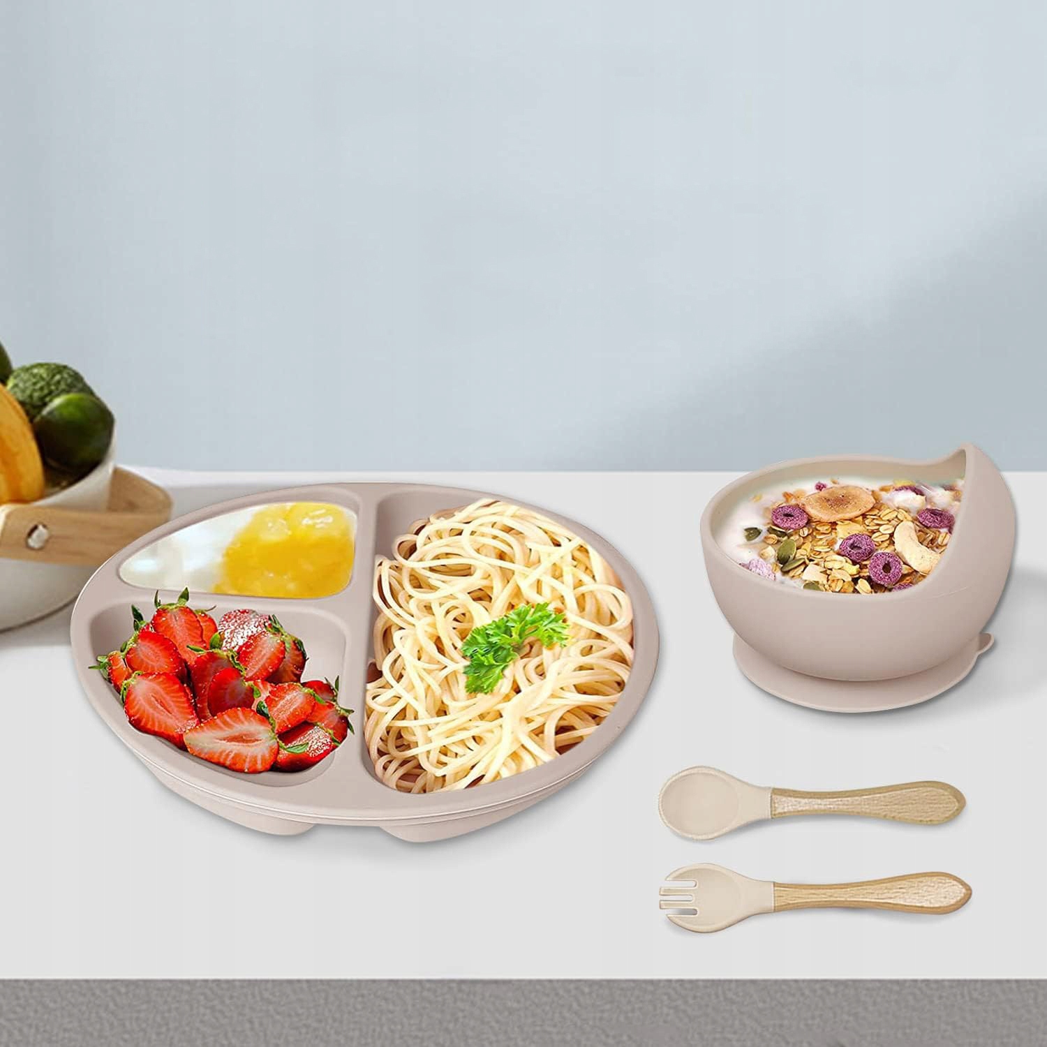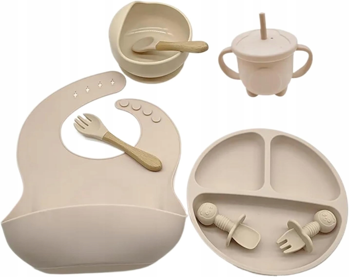 Набір дитячих столових приладів включає регульований нагрудник, тарілку з присоскою, силіконову чашку з присоскою, силіконову чашку з ручкою, дві силіконові ложки. і дві виделки. Дитяча тарілка - це чудовий подарунок для улюбленої дитини, який зробить їжу смачнішою та допоможе їй їсти самостійно.