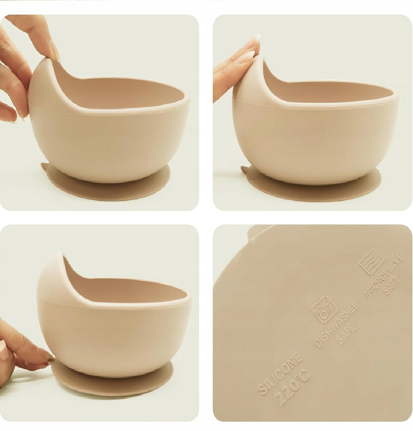 Тарілка та миска мають міцну присоску, яка одразу прилипає до гладких поверхонь. Тарілка вміщує три різні види їжі, що запобігає безладу. Нагрудник доступний у чотирьох регульованих розмірах і ідеально підходить до шиї вашої дитини. Чашки та ложки з ручками мають ергономічний дизайн, що полегшує їх утримання.