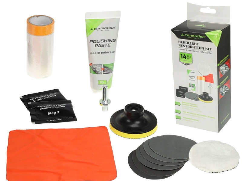 Набір для ремонту фар із 14 частин — це комплексне рішення, коли ви хочете покращити зовнішній вигляд свого автомобіля та підвищити безпеку та видимість на дорозі. Використання нашого набору дає дивовижний і тривалий ефект, якого можна досягти, зробивши це самостійно всього за кілька хвилин.