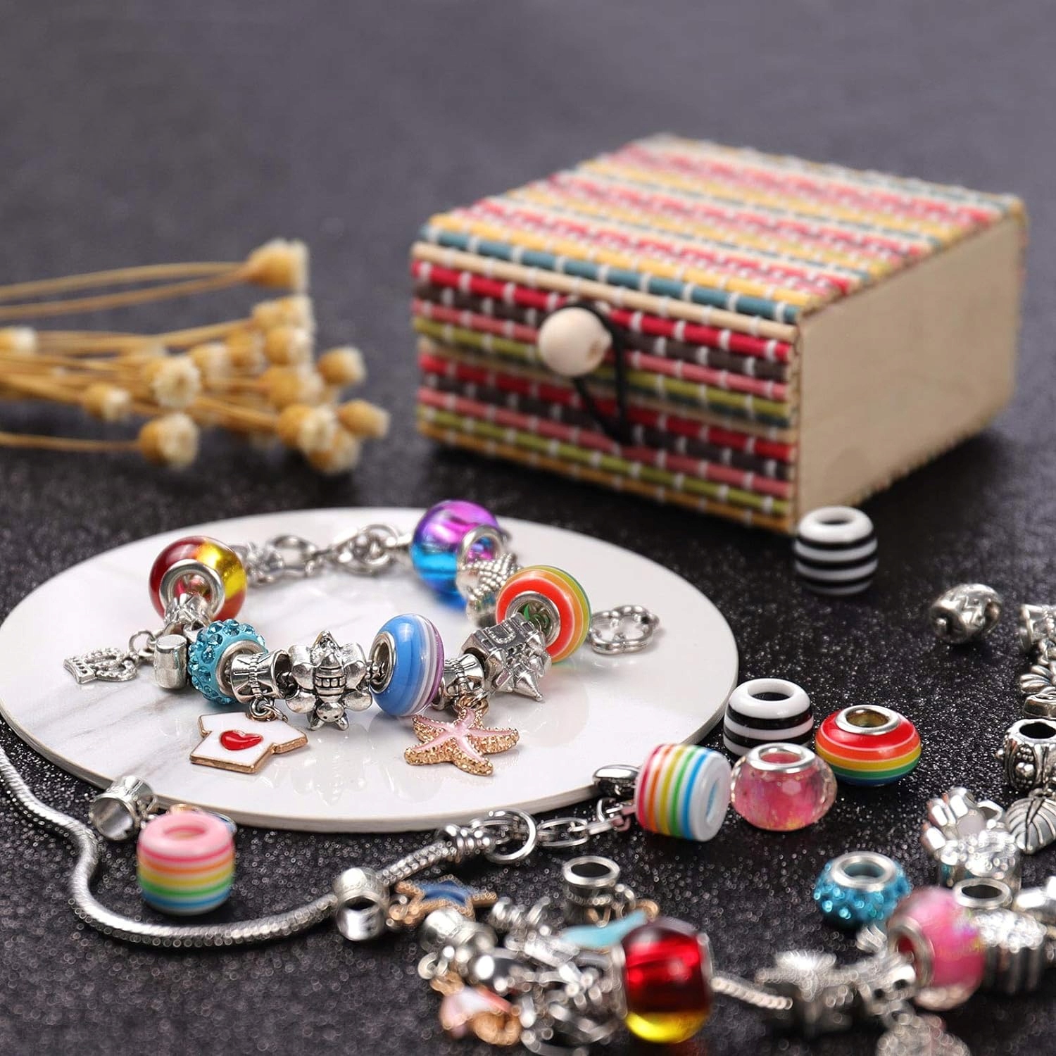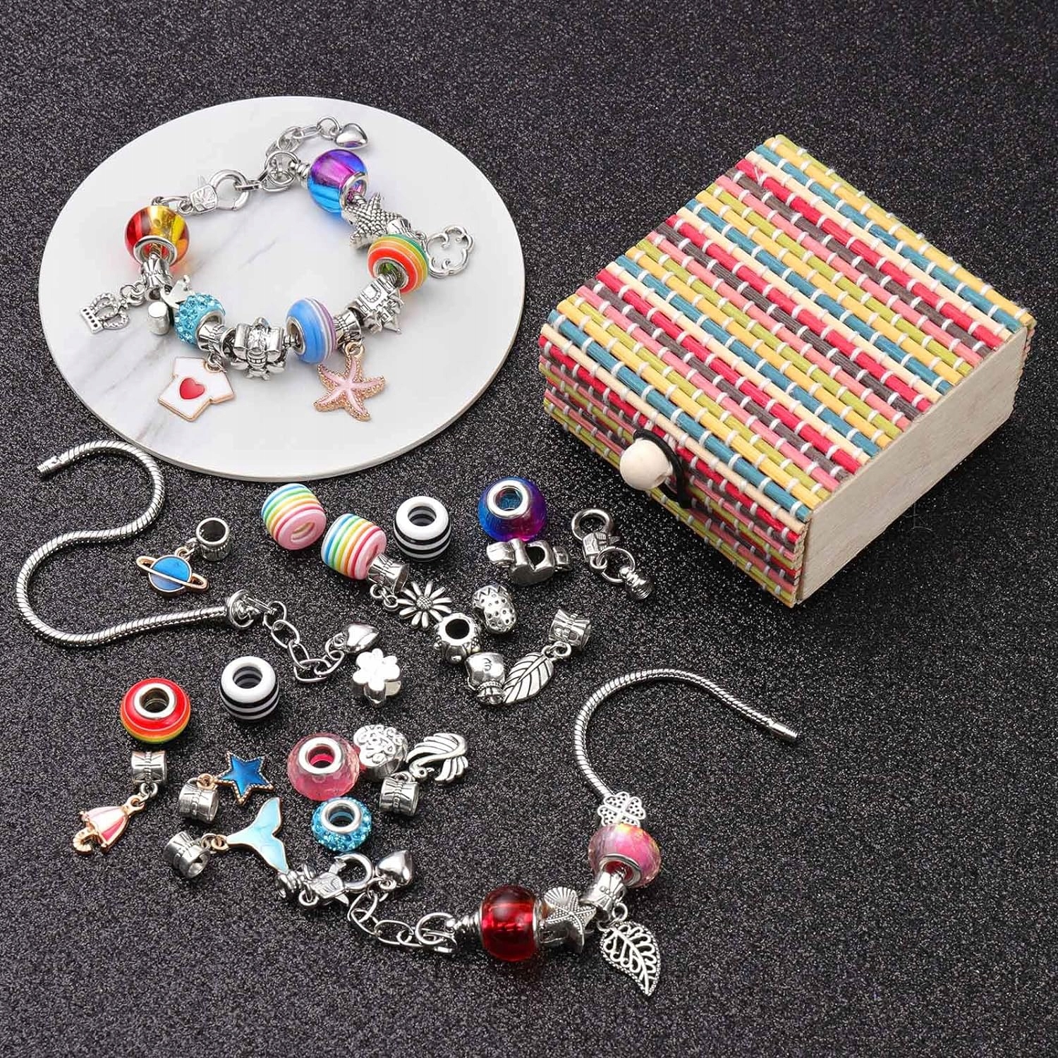 ⭐Набір містить 51 асортимент різнокольорових намистин, амулетів