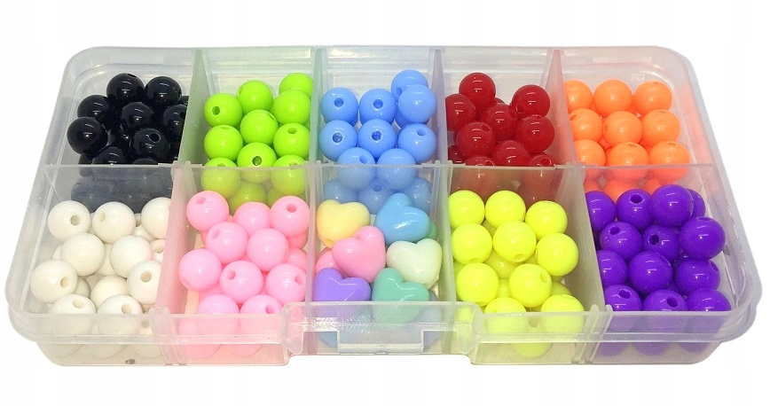Усі намистини в наборі мають отвір для різьби діаметром приблизно 1,5 мм і виготовлені з пластику. Кольори намистин можуть дещо відрізнятися від зображених на фотографіях.