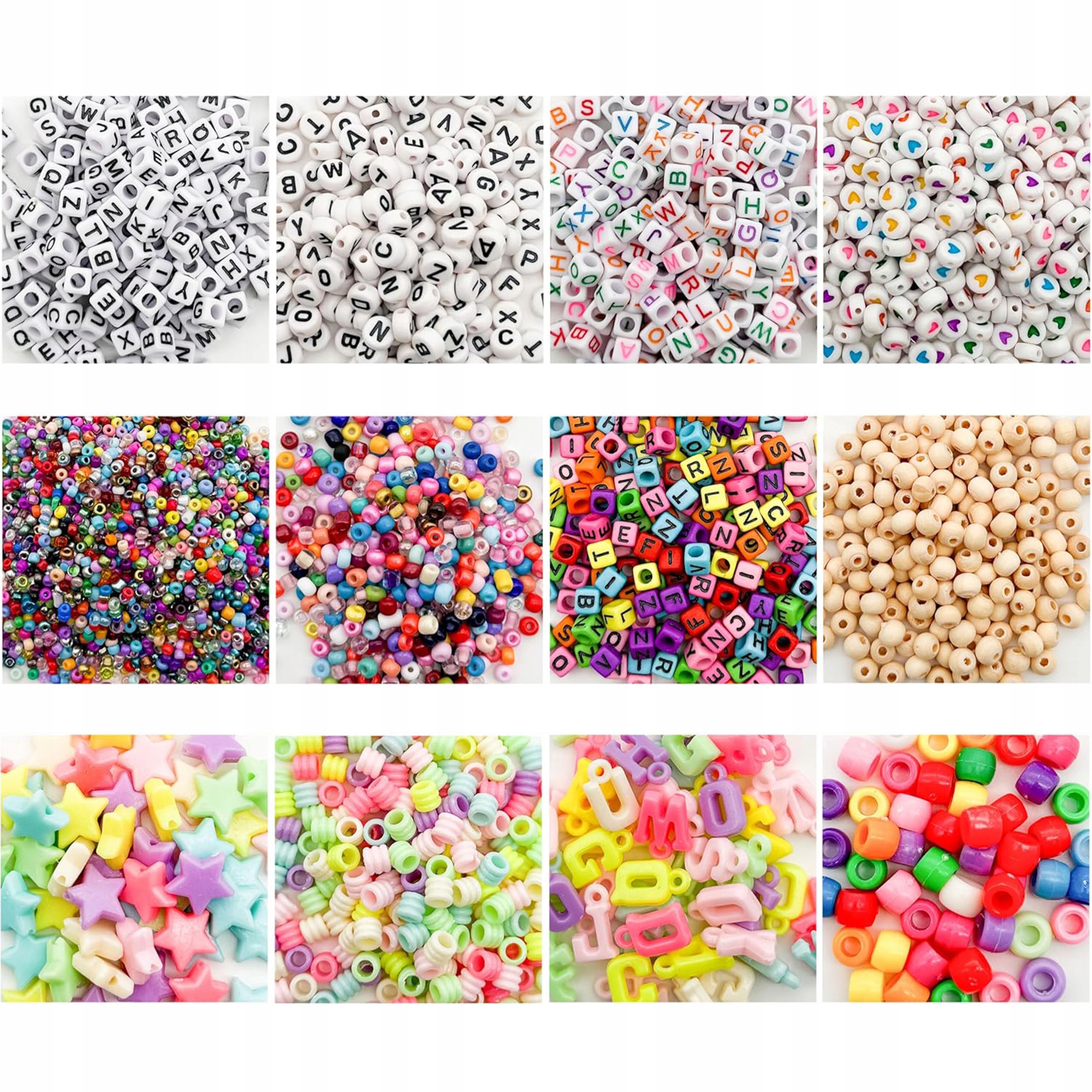 - 24 кольорів нитки - широкий діапазон тіней для ткацьких браслетів та декорацій. Зірки, дерев’яні кульки, міні -намистини 2 мм і 4 мм у тисячах штук.