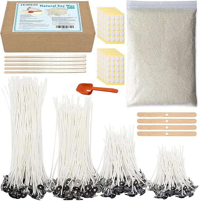 - 【Вміст упаковки】 -- Кожен набір для виготовлення свічок містить 1 кг соєвого воску, 200 бавовняних ґнотів 4 різних довжин: 4 см * 50 шт., 10,5 см * 50 шт., 15 см * 50 шт. і 22 см * 50 шт.; 4 тримачі гноту; 1 чайна ложка соєвого воску; 5 паличок для змішування; і 200 двосторонніх наклейок для ґнотів.
