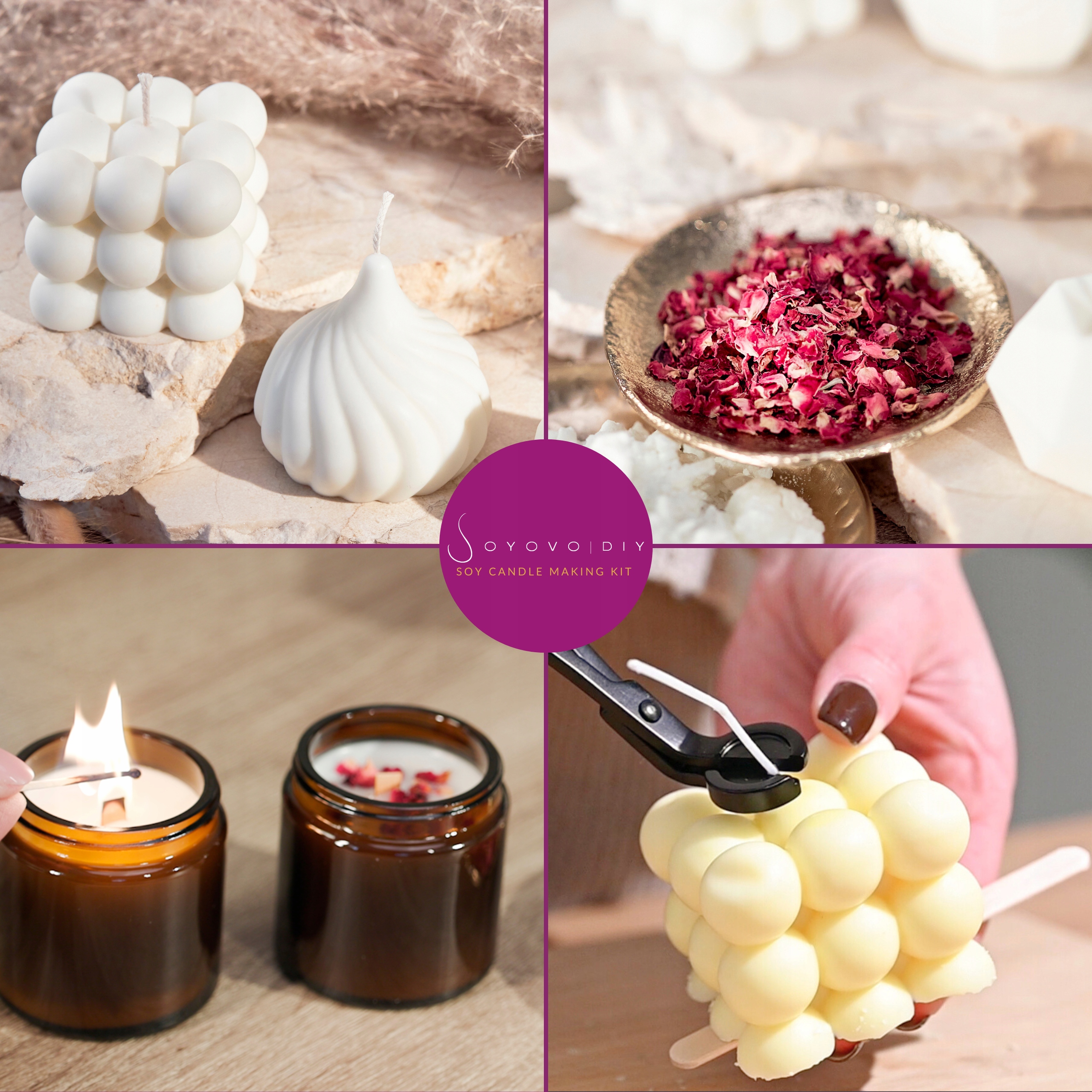 Набір Soyovo DIY дозволяє поєднувати форми, аромати та декорації, щоб зробити кожну свічку унікальною.